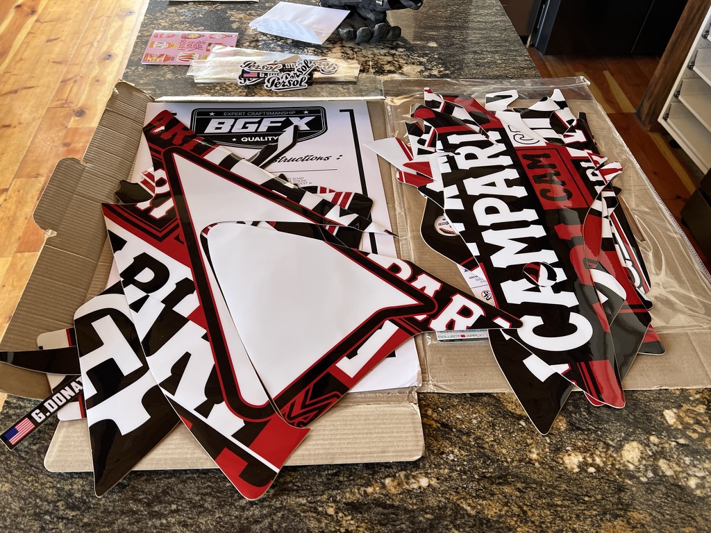 Upon receiving the bike I went through almost everything and it was setup ok enough to start riding so I slapped some graphics I designed on it… well directed… from some concepts. I remain bothered by the execution by the company producing the kit.