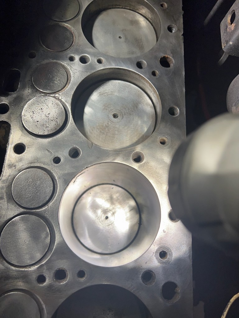 Once cleaned up you can see this engine was rebuilt at sometime with .030″ over pistons. Valves appear to be original.