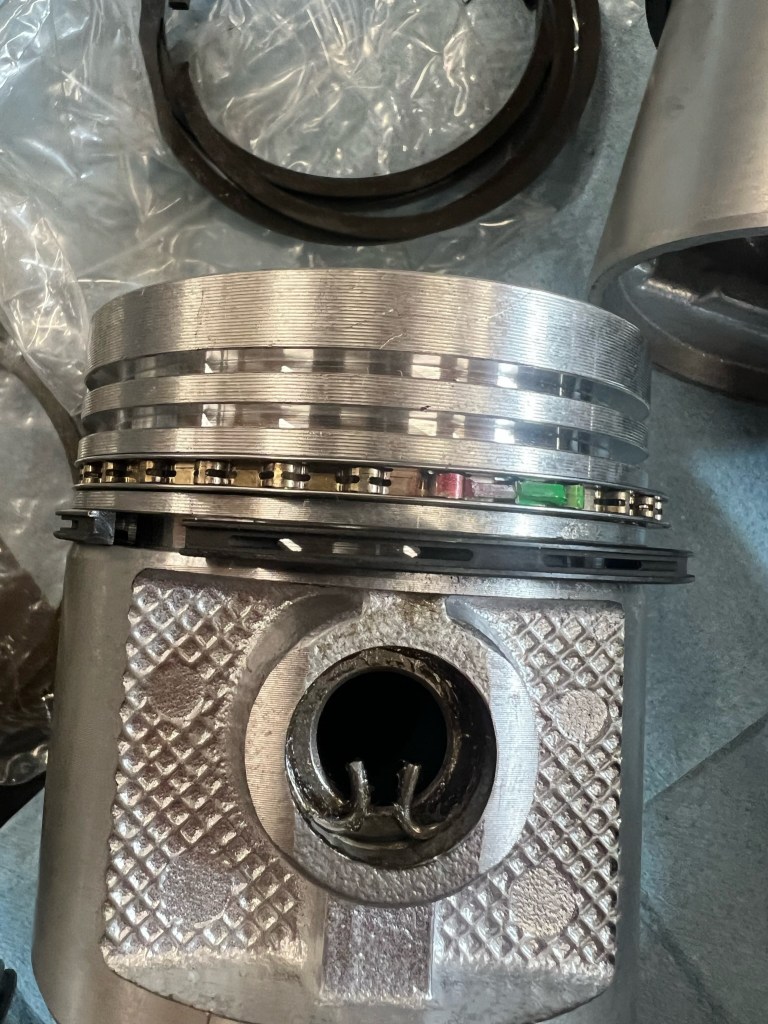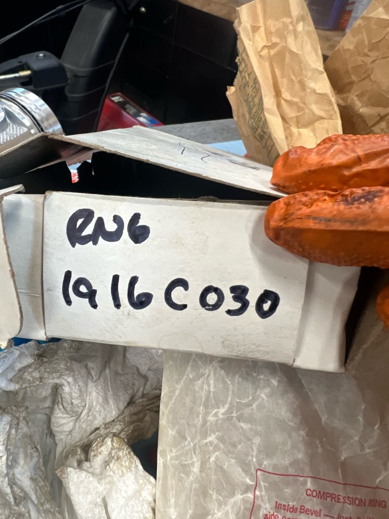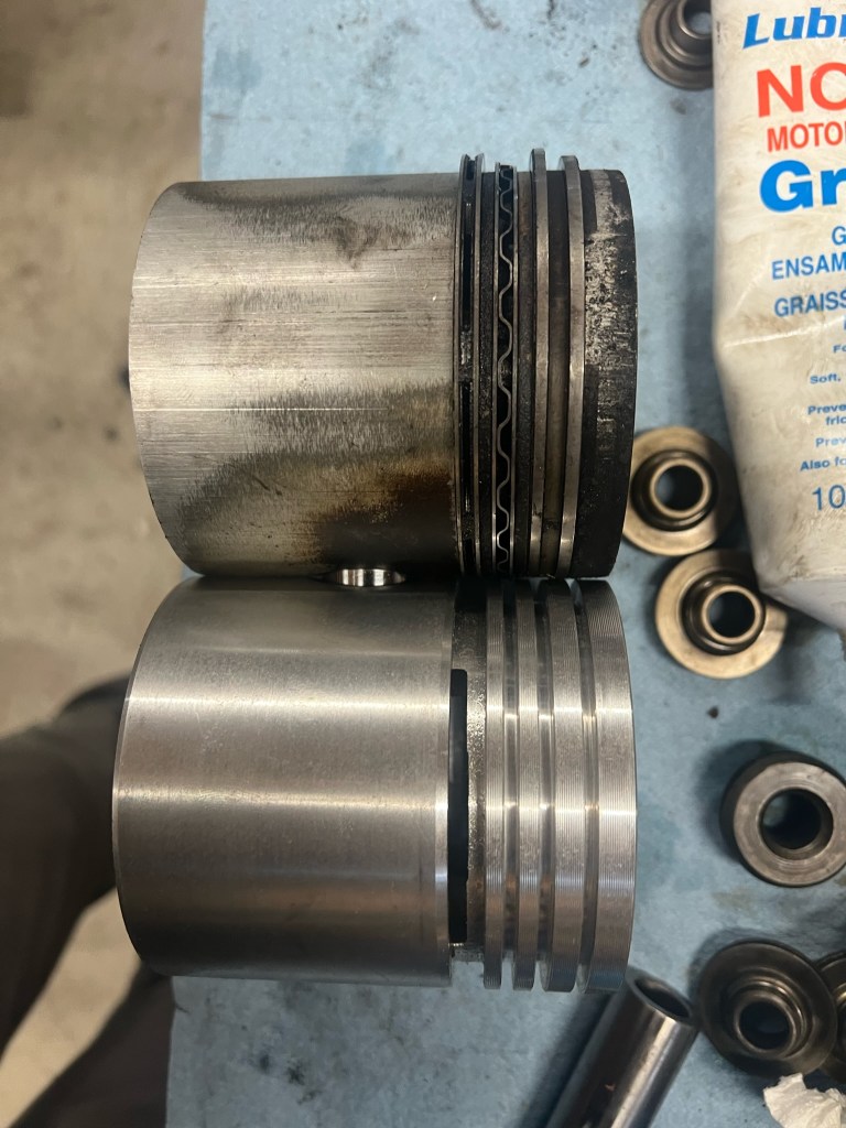 Wrong piston laid next to the original. While these pistons would’ve worked because they are for the same engine, they were generator pistons and took different rings that weren’t available.