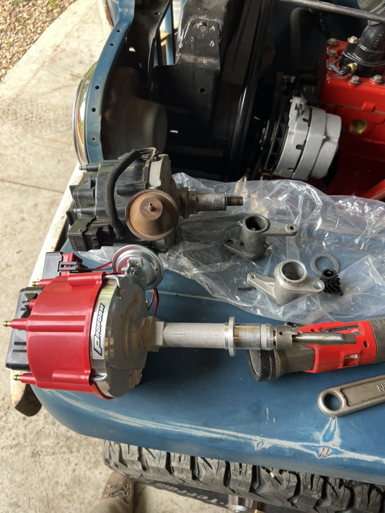 Wasn’t happy with out it was running so I put a newer distributor on it.