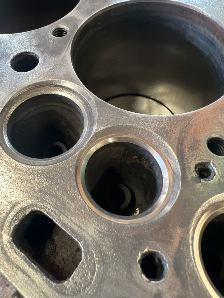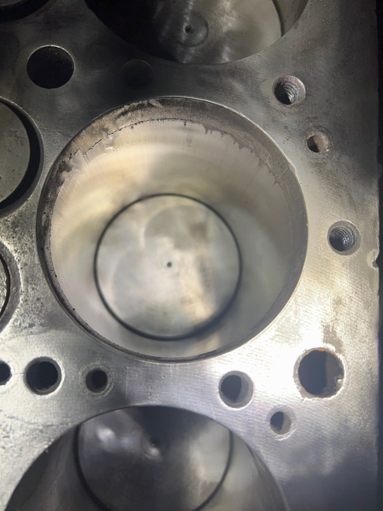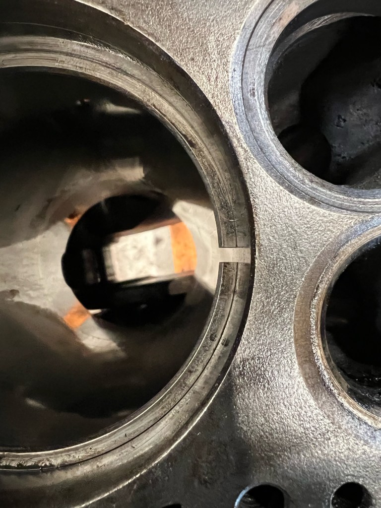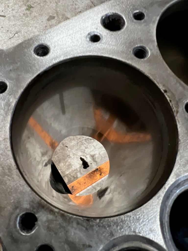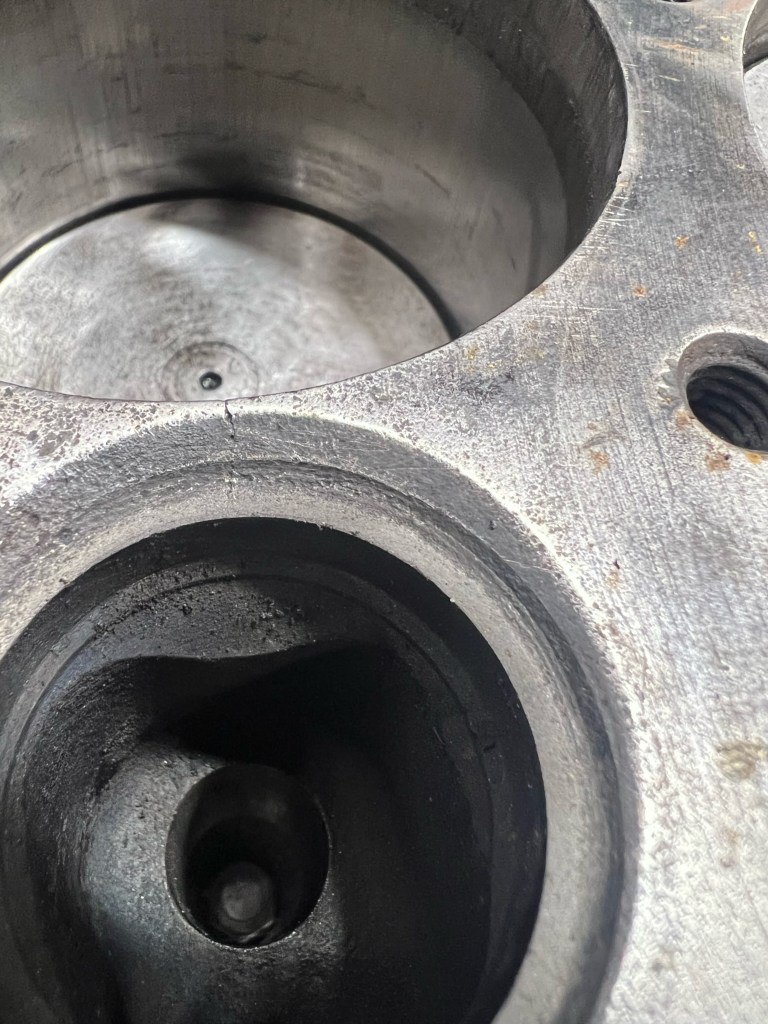 Well fuck, a small crack discovered between the exhaust valve and cylinder. This is one of the major issues with boring the old engines .030 over.