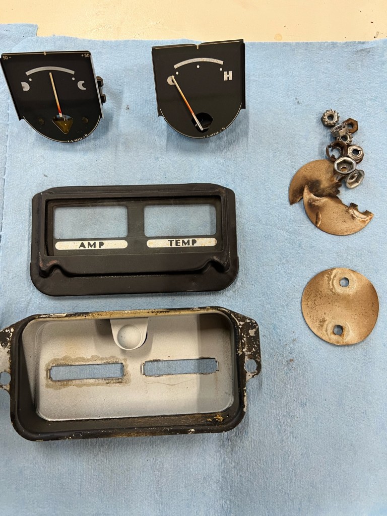 Working on the Gauges and swapping the AMP meter guts to a Volt Meter for the more modern wiring and alternator.