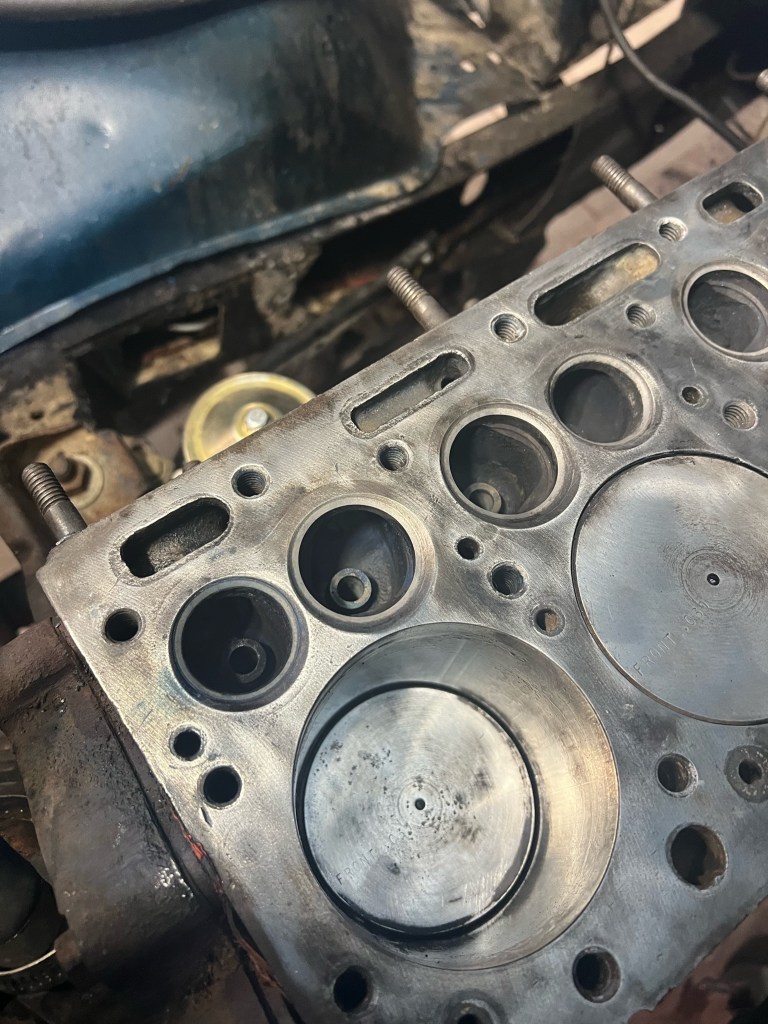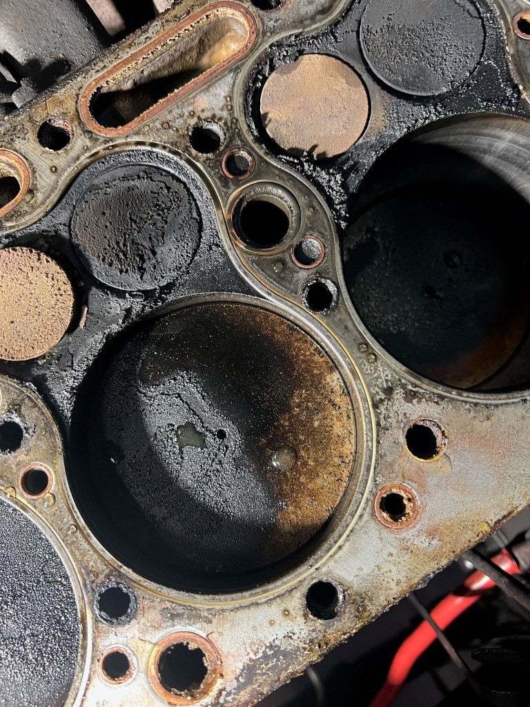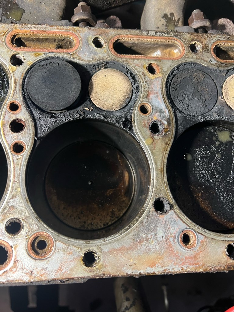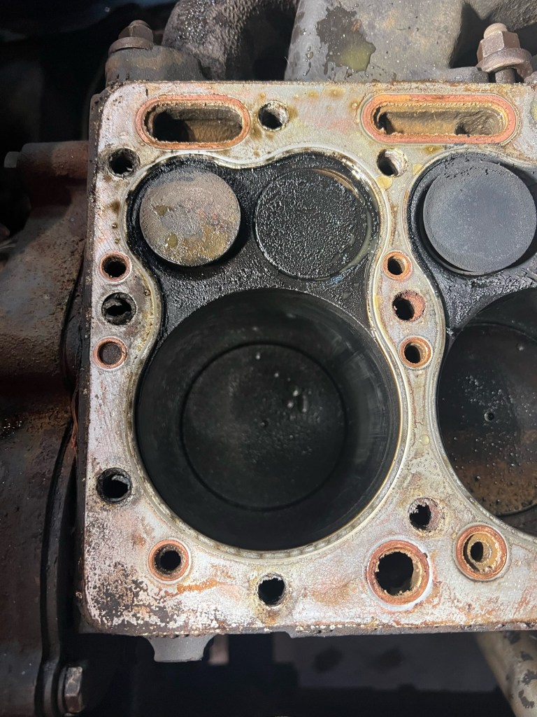 After a lot of bad running I open her up to figure out what the hell is going on. It’s not great, but its a work truck that’s had a hard life. Clearly the head gasket was leaking, not surprising on a flathead like this. Years of carbon build up also present. I believe the previous owner wasn’t running lead additive in the gas and also smoked the exhaust valves which you’ll see later.