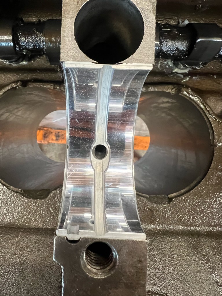 Freshly ground crank dropped in. This thing is heavy as hell and hard to drop in gently without scraping anything.