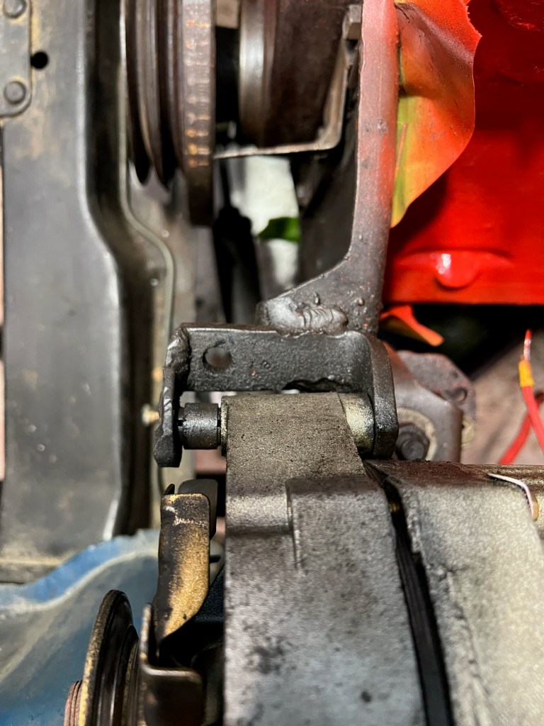 A very shittly welded bracket to modify a GM 1wire alternator to the engine. This was fixed up before going back in.