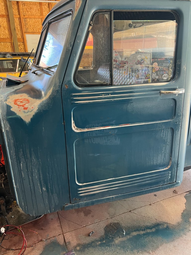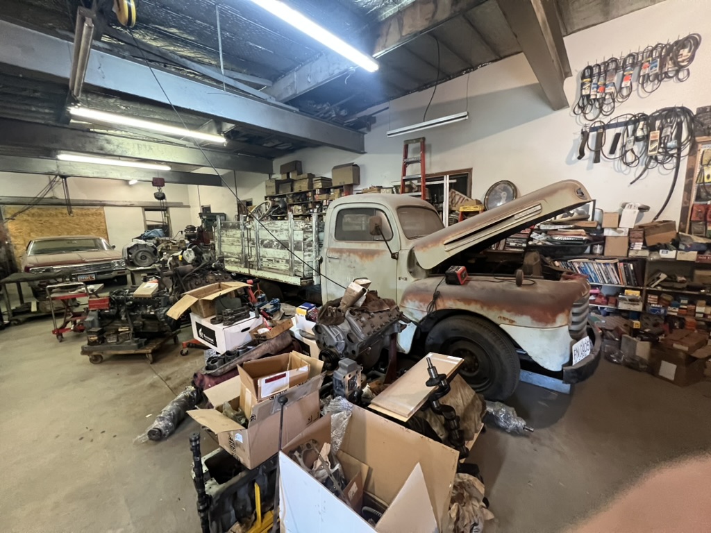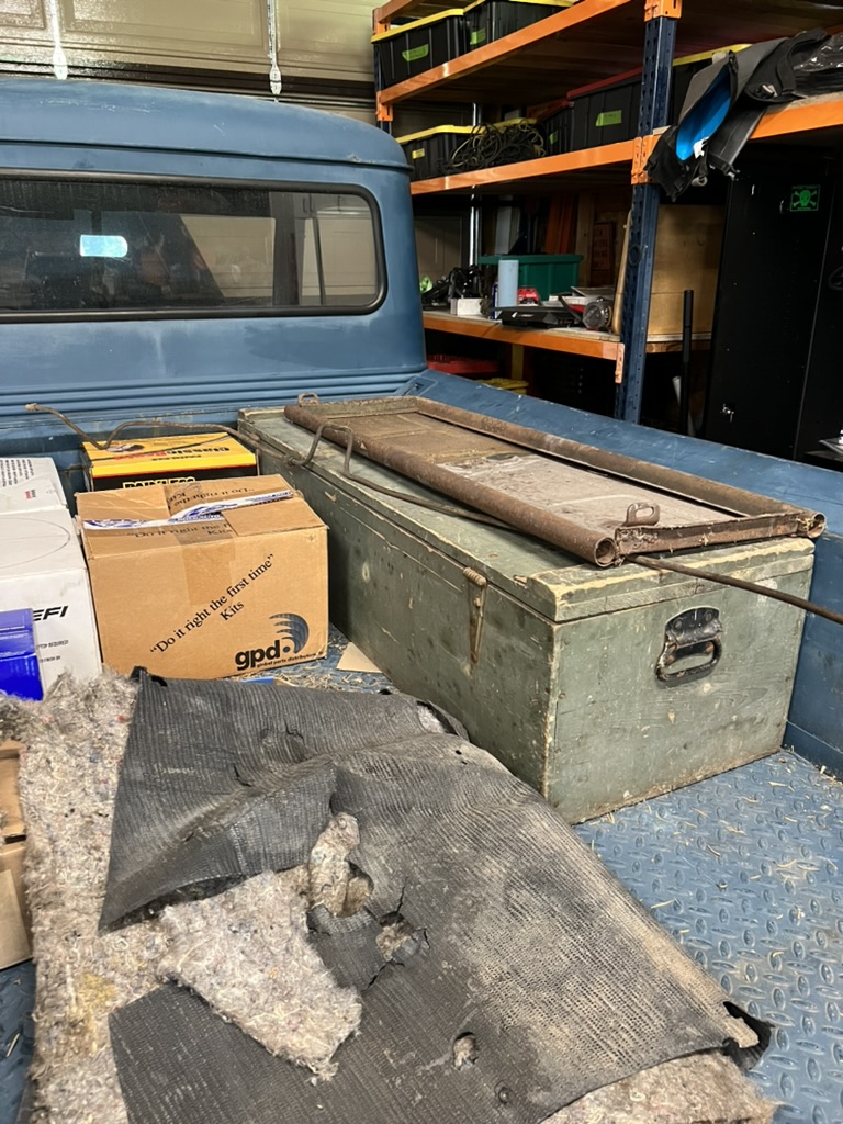 1955 Willys 1 ton pickup under restoration.