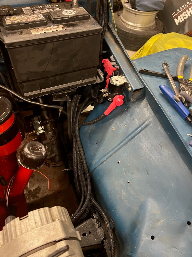 Wiring cleaned up on one fenderwell with GM style waterproof connectors.