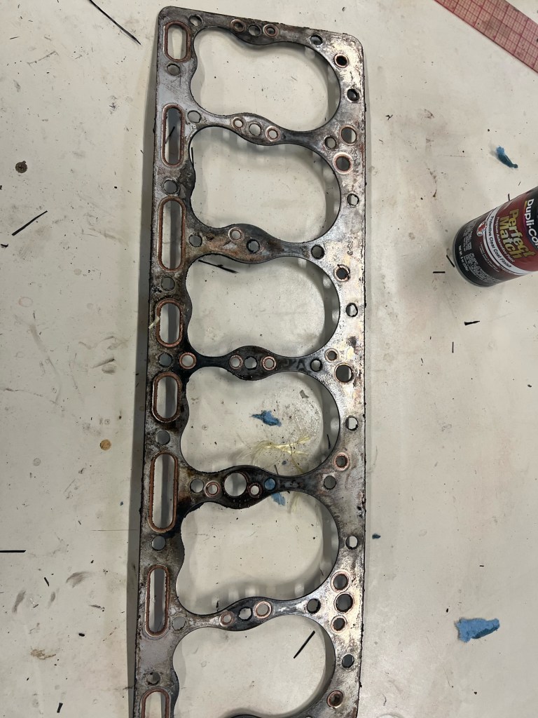 Pulling off the hold head gasket, you can see the burn markets between cylinders 2-3-4-5