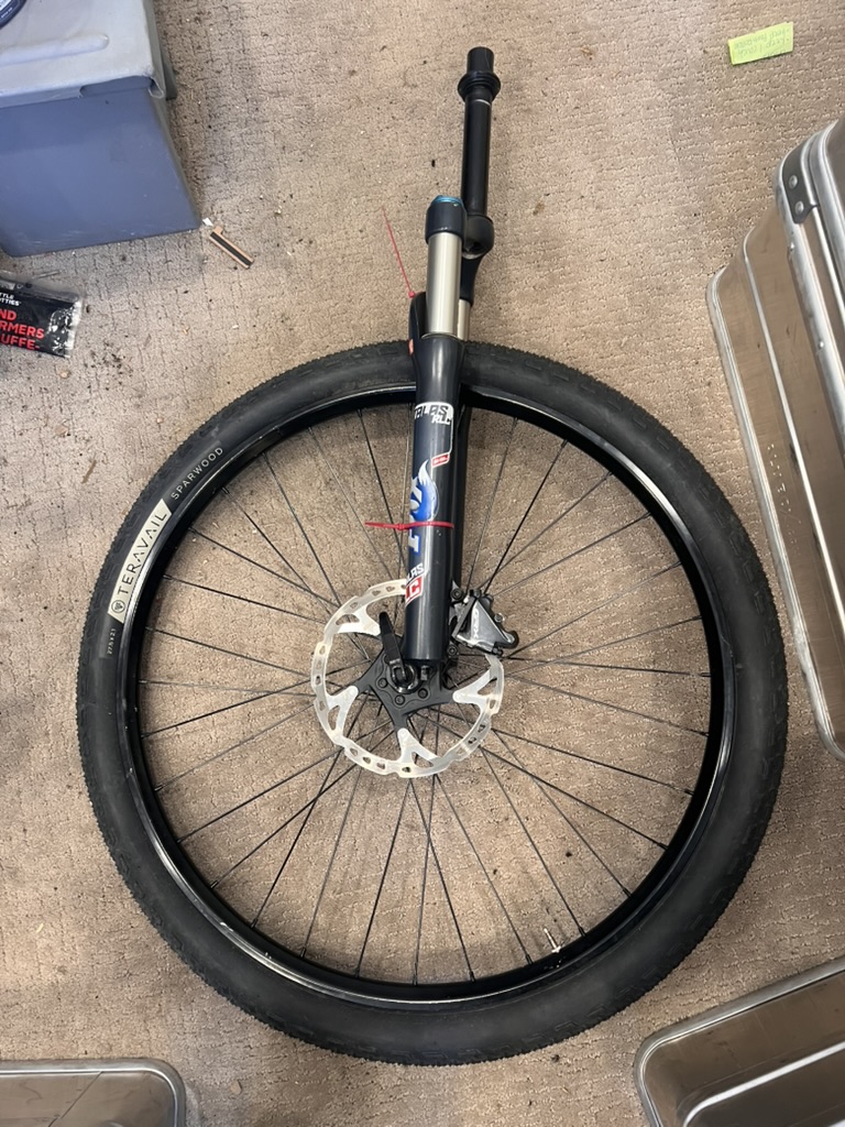 Early 2000’s Fox Talas RLC (Adjustable Travel, Lockout, Disk Brake comptable, perfect for what I was planning)
