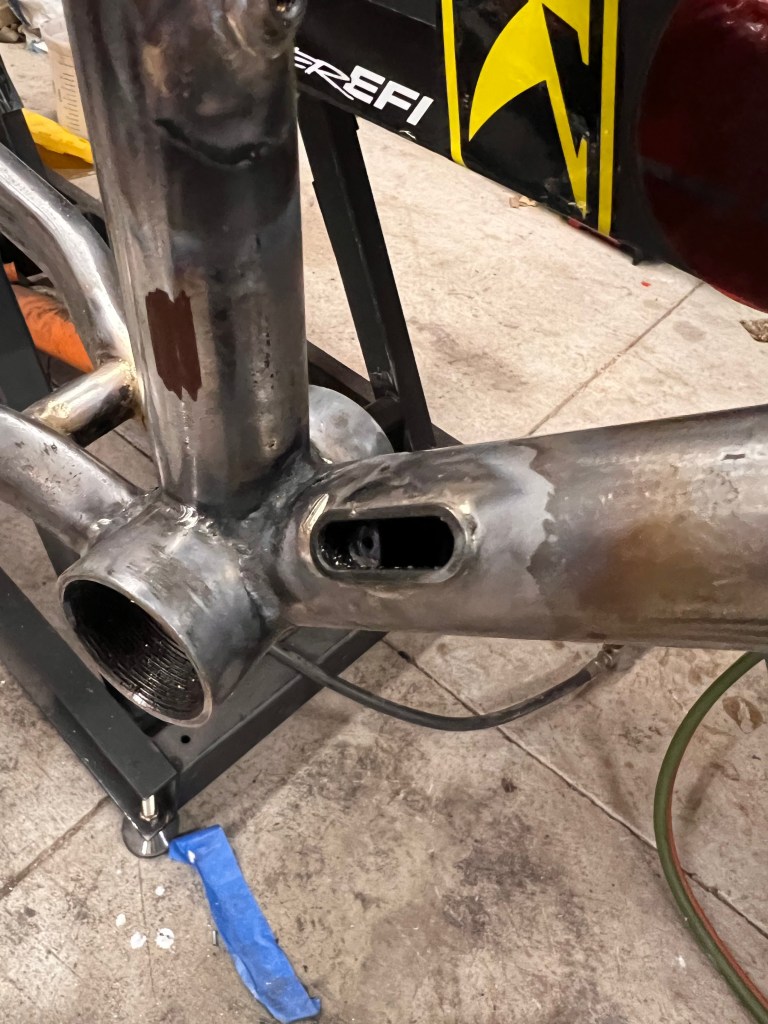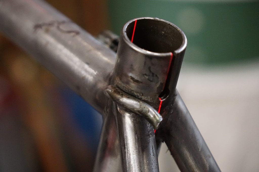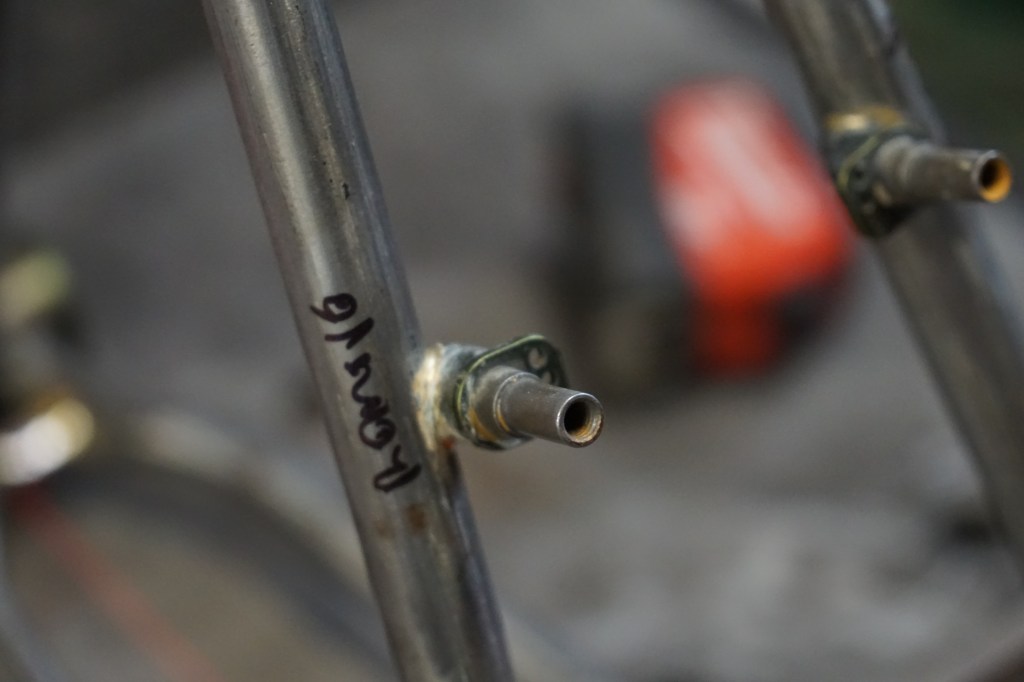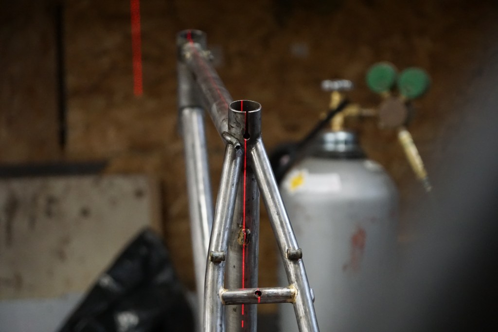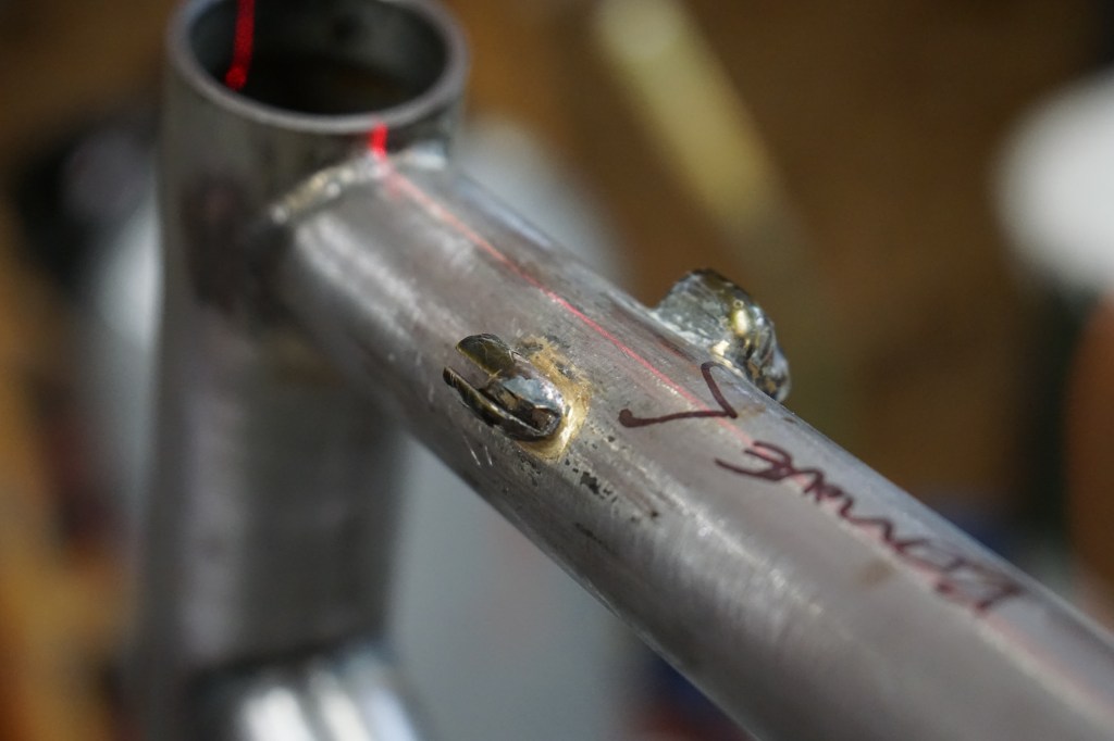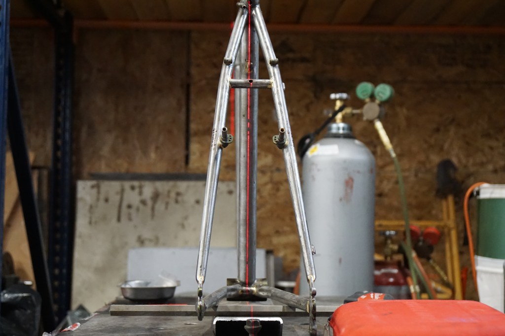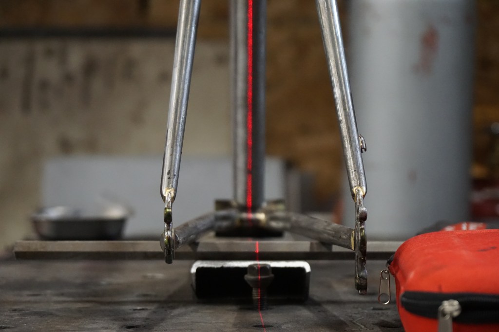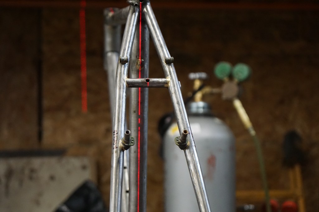 Before starting on the big brazing and modifying tasks, I checked frame straightness to the best of my tooling abilities and identified what needed to be removed and added