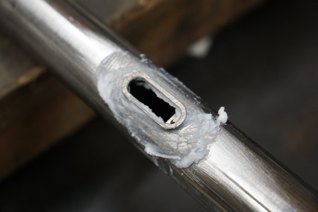 Then I started drilling holes and fitting for the internal cable guides…. EEEEEK